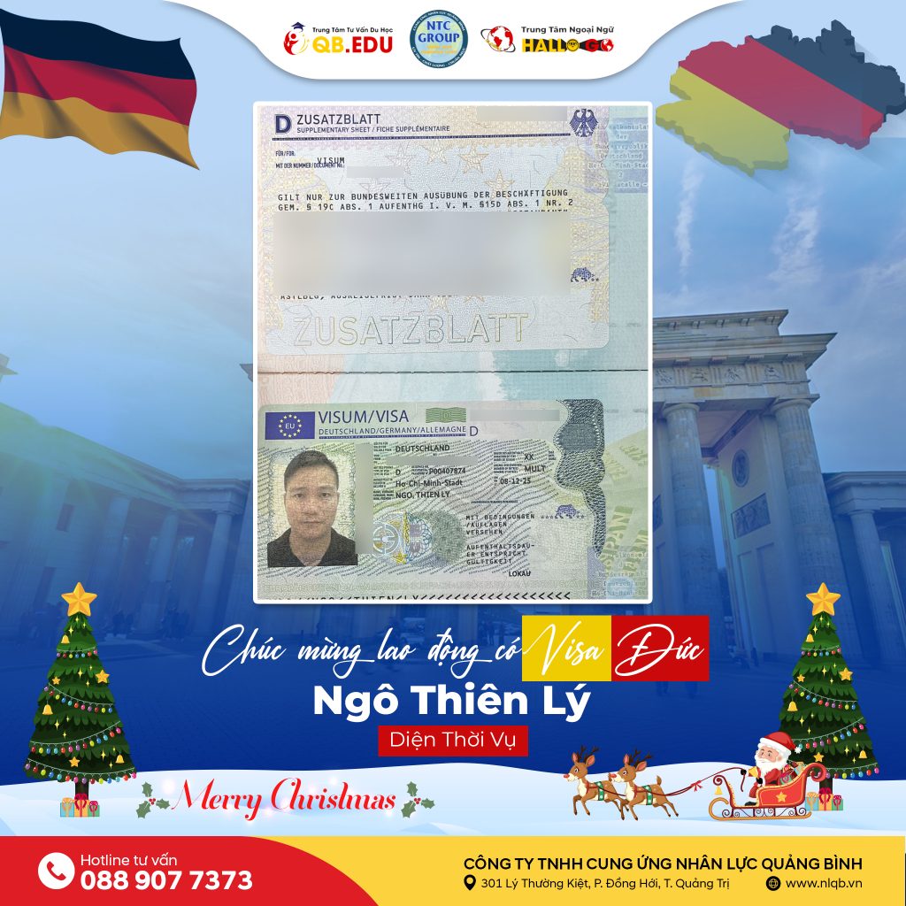 Cung Ứng Nhân Lực Quảng Bình tiếp tục đón nhận những tin vui đầy tự hào khi 3 lao động đến từ Quảng Bình đã chính thức nhận Visa Đức diện Thời vụ, sẵn sàng cho hành trình làm việc hợp pháp tại Cộng hòa Liên bang Đức. 🎉 Xin chúc mừng: Bạn Ngô Thiên […]