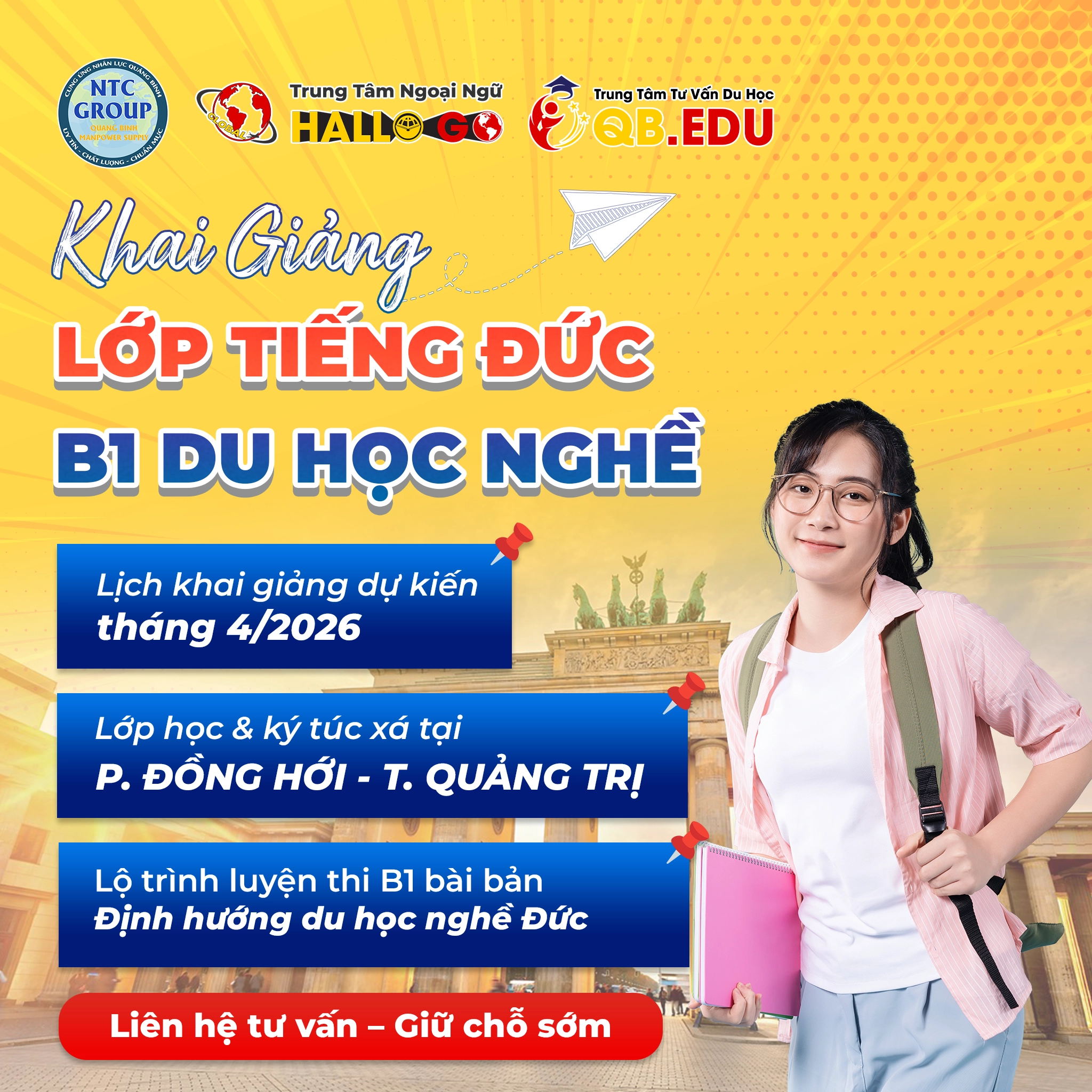 Hiểu được điều đó, Trung tâm ngoại ngữ HalloGo chính thức chuẩn bị khai giảng lớp tiếng Đức B1 du học nghề tháng 4/2026, với quy mô duy nhất 1 lớp, giới hạn chỉ từ 12 – 15 học viên.